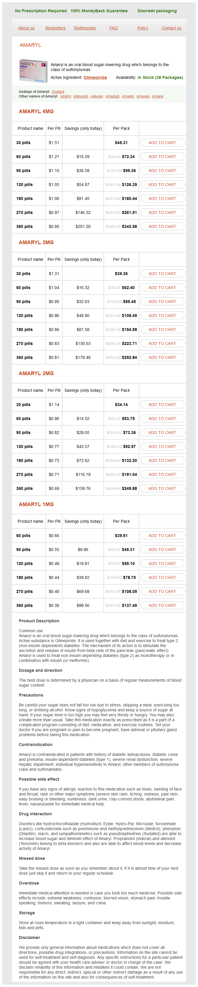 Glimepiride packs: 30 pills, 60 pills, 90 pills, 120 pills, 180 pills, 270 pills, 360 pills