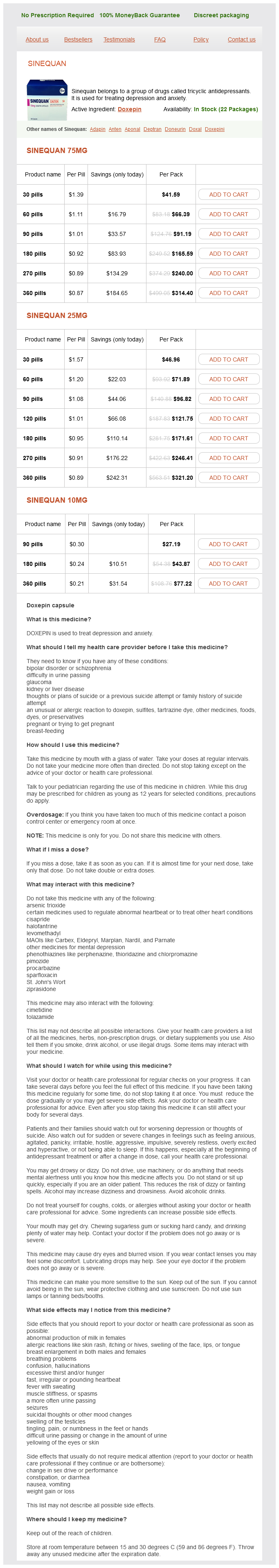 Doxepin packs: 30 pills, 60 pills, 90 pills, 180 pills, 270 pills, 360 pills, 120 pills