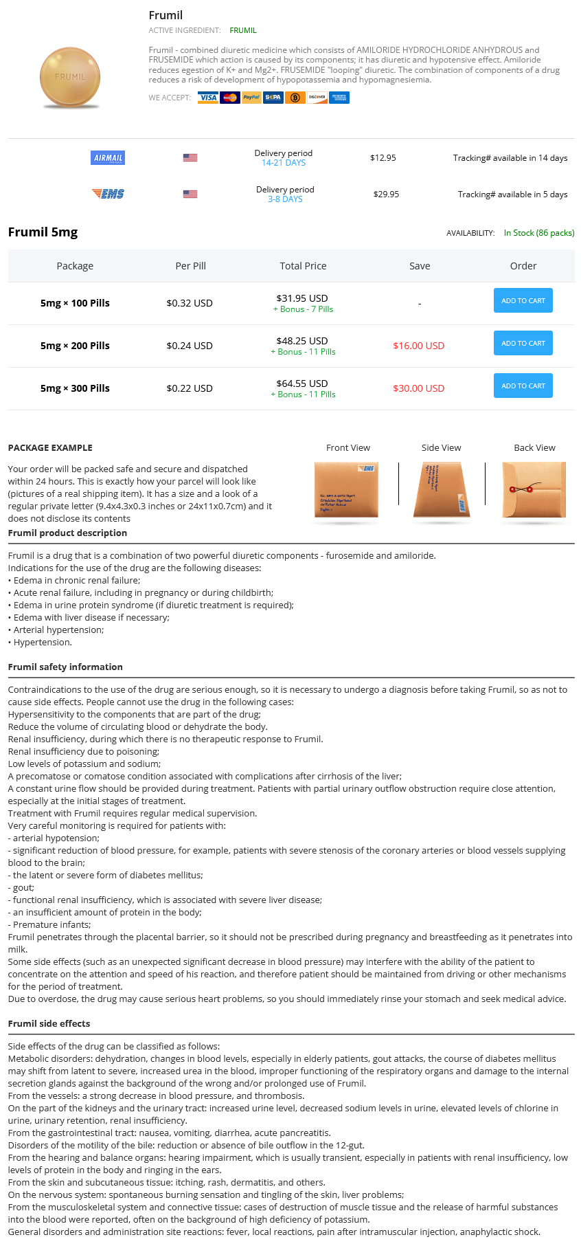 Frumil packs: 100 pills, 200 pills, 300 pills