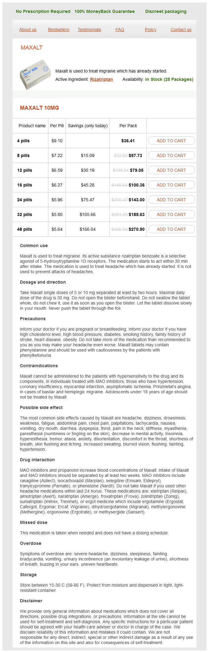 Rizatriptan packs: 4 pills, 8 pills, 12 pills, 16 pills, 24 pills, 32 pills, 48 pills